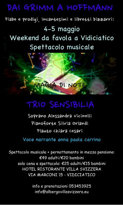 aria di magia si è dunque respirata tra le mura dell’accogliente Hotel Villa Svizzera di Vidiciatico…luogo appeso nel tempo, ideale location per questa rappresentazione narrativo-musicale.